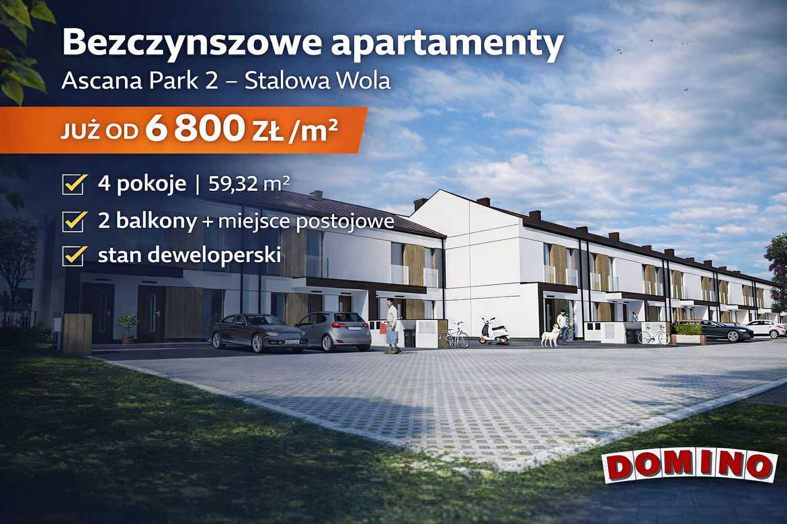 Biuro Nieruchomości DOMINO prezentuje nowoczesne apartamenty na nowobudowanym prestiżowym osiedlu Ascana Park 2 w Stalowej Woli. Inwestycja cieszy się bardzo dobrą opinią mieszkańców, a jej lokalizacja — kilka minut od centrum, przy ul. Zamojskiego — należy do najwygodniejszych w mieście.