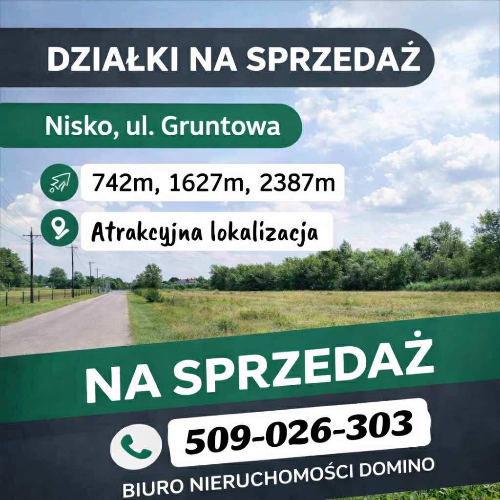Nisko ul. Gruntowa. Działki o pow. 742m, 1627m, 2387m