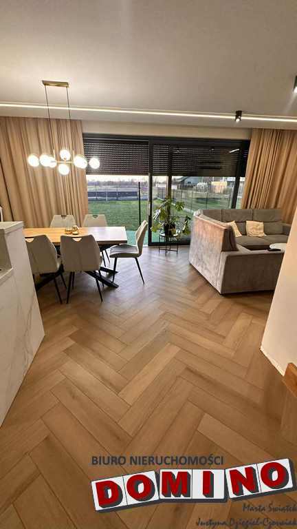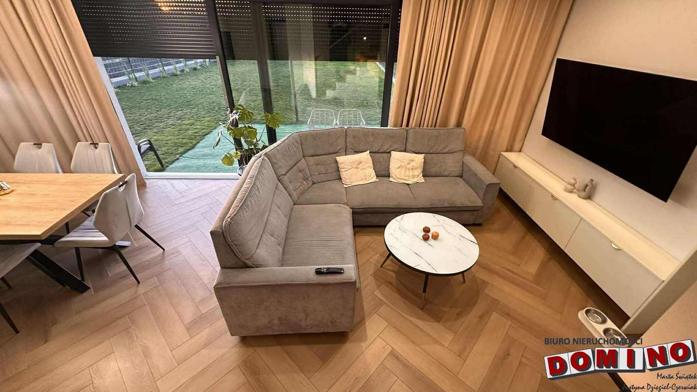 Dom z 2024 roku, ma funkcjonalny układ – salon z tarasem, otwarta kuchnia, kilka pokoi które można zagospodarować według indywidualnych potrzeb nawet dla wieloosobowej rodziny. W bryle domu znajduje się garaż jednostanowiskowy. W cenie pozostaje pełne wyposażenie – meble i sprzęt AGD, dzięki czemu można wprowadzić się od razu.